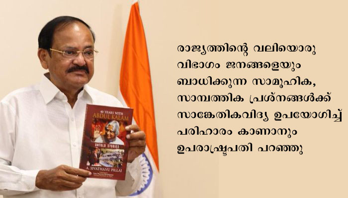 ഡോ. ശിവ താണുപിള്ള രചിച്ച ’40 ഇയേഴ്സ് വിത്ത് അബ്ദുൽ കലാം- അൺ ടോൾഡ് സ്റ്റോറിസ്’ എന്ന പുസ്തകത്തിന്റെ വെർച്വൽ പ്രകാശന ചടങ്ങിൽ സംസാരിക്കുകയായിരുന്നു അദ്ദേഹം.ഒരു യഥാർത്ഥ കർമ്മയോഗിയായിരുന്ന ഡോ. കലാം, ഓരോ ഇന്ത്യക്കാരനും പ്രചോദനമാണെന്നും ഉപ രാഷ്ട്രപതി പറഞ്ഞു.
