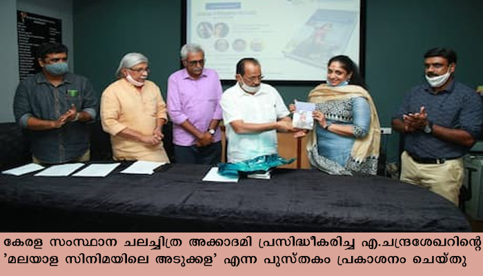 കേരള സംസ്ഥാന ചലച്ചിത്ര അക്കാദമി പ്രസിദ്ധീകരിച്ച എ.ചന്ദ്രശേഖറിന്റെ ‘മലയാള സിനിമയിലെ അടുക്കള’ എന്ന പുസ്തകം പ്രകാശനം ചെയ്തു . ചലച്ചിത്ര അക്കാദമി നവതി ഫെലോഷിപ്പിന്റെ ഭാഗമായി സമര്പ്പിച്ച പ്രബന്ധത്തിന്റെ പുസ്തകരൂപമായ അടുക്കള കഴക്കൂട്ടം കിന്ഫ്ര ഫിലിം ആന്റ് വീഡിയോ പാര്ക്കിലെ സിഫ്ര കോണ്ഫറന്സ് ഹാളില് നടന്ന ചടങ്ങില് സംവിധായകൻ മോഹൻ നടി ശ്രീലക്ഷ്മിക്ക് നൽകിയാണ് പ്രകാശനം ചെയ്തത്.