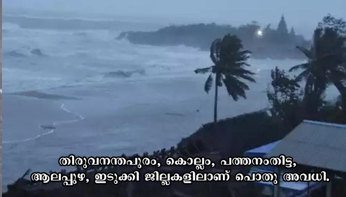 തിരുവനന്തപുരം, കൊല്ലം, പത്തനംതിട്ട, ആലപ്പുഴ, ഇടുക്കി ജില്ലകളിലാണ് പൊതു അവധി.