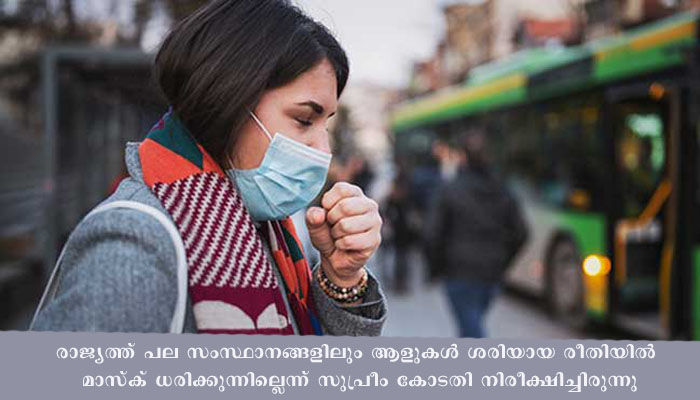 രാജ്യത്ത് പല സംസ്ഥാനങ്ങളിലും ആളുകള് ശരിയായ രീതിയില് മാസ്ക് ധരിക്കുന്നില്ലെന്ന് സുപ്രീം കോടതി നിരീക്ഷിച്ചിരുന്നു. ഇതിനു പിന്നാലെയാണ്