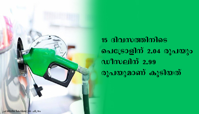 കൊച്ചി: കഴിഞ്ഞ 16 ദിവസത്തിനിടെ രാജ്യത്ത് പെട്രോള് ഡീസല് വില വീണ്ടും വര്ദ്ധിച്ചു. പതിമൂന്നാം തവണയാണ് പെട്രോളിനും ഡീസലിനും വില വര്ദ്ധിക്കുന്നത്. 2020 ഡിസംബർ 5ന് പെട്രോളിന് 27 പൈസയും ഡീസലിന് 26 പൈസയും വര്ദ്ധിച്ചു. 15 ദിവസത്തിനിടെ പെട്രോളിന് 2.04 രൂപയും ഡീസലിന് 2.99 രൂപയുമാണ് കൂടിയത്.
