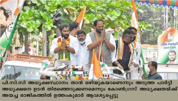 150 ഡിവിഷനുകളിലേക്ക് നടന്ന മുന്സിപ്പല് തിരഞ്ഞെടുപ്പില് രണ്ടിടത്ത് മാത്രമാണ് കോണ്ഗ്രസിന് ജയിക്കാനായിരുന്നത്. 2016ലെ തിരഞ്ഞെടുപ്പിലും ഉത്തംകുമാറിന്റെ നേതൃത്വത്തില് രണ്ട് സീറ്റുകളാണ് കോണ്ഗ്രസ് നേടിയത്.നാല്ഗോണ്ട മണ്ഡലത്തില് നിന്നുള്ള ലോക്സഭാ എംപി കൂടിയായി ഉത്തംകുമാര് 2015ലാണ് തെലങ്കാന പിസിസി അധ്യക്ഷ സ്ഥാനത്തേക്ക് എത്തിയത്. 2018ല് തെലങ്കാന നിയമസഭാ തിരഞ്ഞെടുപ്പില് കോണ്ഗ്രസ് പരാജയപ്പെട്ട വേളയിലും അധ്യക്ഷ സ്ഥാനം ഒഴിയാന് ഉത്തംകുമാര് സന്നദ്ധത അറിയിച്ചെങ്കിലും പദവിയില് തുടരാന് ഹൈക്കമാന്ഡ് നിര്ദേശിക്കുകയായിരുന്നു.