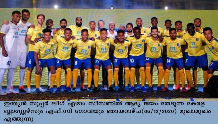 പനജി: ഇന്ത്യന് സൂപ്പര് ലീഗ് ഏഴാം സീസണില് ആദ്യ ജയം തേടുന്ന കേരള ബ്ലാസ്റ്റേഴ്സും എഫ്.സി ഗോവയും ഞായറാഴ്ച(06/12/2020) മുഖാമുഖം എത്തുന്നു. മൂന്നു കളി കഴിഞ്ഞിട്ടും ജയം കണ്ടെത്താൻ ഇരു ടീമുകൾക്കും സാധിച്ചിട്ടില്ല.