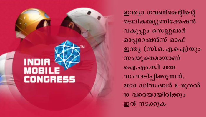ന്യൂ ഡൽഹി: വെര്ച്ച്വല് ഇന്ത്യാ മൊബൈല് കോണ്ഗ്രസ് (ഐ.എം.സി) 2020ല് ഡിസംബര് 08 രാവിലെ 8.45ന് പ്രധാനമന്ത്രി ശ്രീ നരേന്ദ്രമോദി ഉദ്ഘാടന അഭിസംബോധന നടത്തും. ഇന്ത്യാ ഗവണ്മെന്റിന്റെ ടെലികമ്മ്യൂണിക്കേഷന് വകുപ്പും സെല്ലുലാര് ഓപ്പറേഷന്സ് ഓഫ് ഇന്ത്യ (സി.ഒ.എ.ഐ)യും സംയുക്തമായാണ് ഐ.എം.സി 2020 സംഘടിപ്പിക്കുന്നത്. 2020 ഡിസംബര് 8 മുതല് 10 വരെയായിരിക്കും ഇത് നടക്കുക.