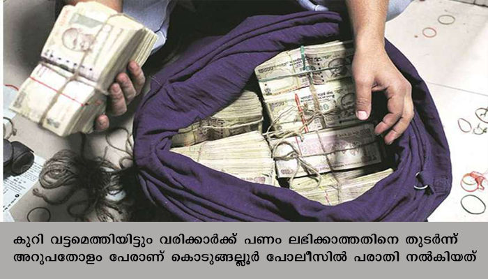 കുറി വട്ടമെത്തിയിട്ടും വരിക്കാര്ക്ക് പണം ലഭിക്കാത്തതിനെ തുടര്ന്ന് അറുപതോളം പേരാണ് കൊടുങ്ങല്ലൂര് പോലീസില് പരാതി നല്കിയത്.