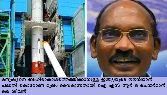 ന്യൂഡൽഹി: മനുഷ്യനെ ബഹിരാകാശത്തെത്തിക്കാനുള്ള ഇന്ത്യയുടെ ഗഗൻയാൻ പദ്ധതി കൊറോണ മൂലം വൈകുന്നതായി ഐ എസ് ആർ ഒ ചെയർമാൻ കെ ശിവൻ.
