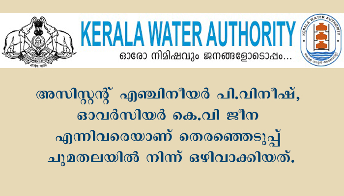 വാട്ടർ അതോറിറ്റി പമ്പിംഗ് അറ്റകുറ്റപ്പണി: രണ്ട് ഉദ്യോഗസ്ഥരുടെ തെരഞ്ഞെടുപ്പ് ഡ്യൂട്ടി ഒഴിവാക്കി.