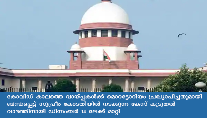 കോവിഡ് കാലത്തെ മൊറട്ടോറിയം കേസ് സുപ്രീം കോടതി ഡിസംബര്‍ 14 ലേക്ക് മാറ്റി