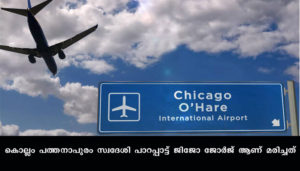 ഷിക്കാഗോ: ഷിക്കാഗോ രാജ്യാന്തര വിമാനത്താവളത്തിൽ വിമാന നിയന്ത്രണ വാഹനത്തിന്റെ അടിയിൽപ്പെട്ട് മലയാളി ജീവനക്കാരൻ മരിച്ചു. കൊല്ലം പത്തനാപുരം സ്വദേശി പാറപ്പാട്ട് ജിജോ ജോർജ് ആണ് മരിച്ചത്.