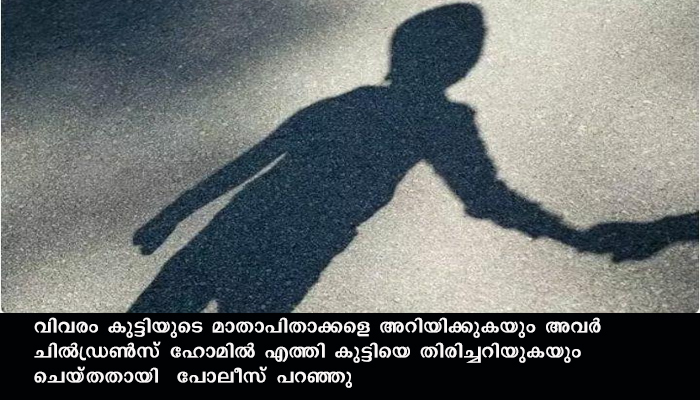 വിവരം കുട്ടിയുടെ മാതാപിതാക്കളെ അറിയിക്കുകയും അവർ ചിൽഡ്രൺസ് ഹോമിൽ എത്തി കുട്ടിയെ തിരിച്ചറിയുകയും ചെയ്തതായി പോലീസ് പറഞ്ഞു.