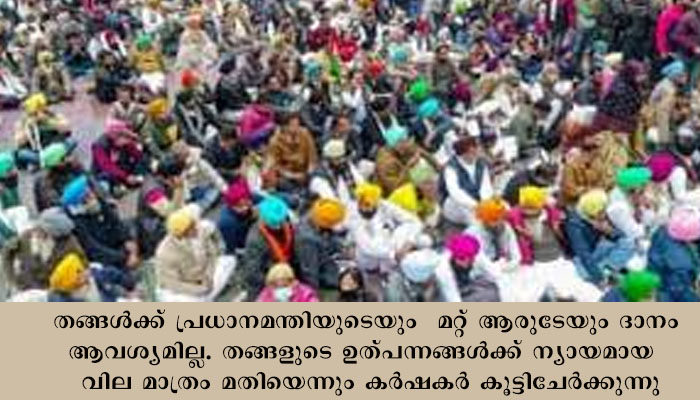 തങ്ങള്‍ക്ക് പ്രധാനമന്തിയുടെയും മറ്റ് ആരുടേയും ദാനം ആവശ്യമില്ല. തങ്ങളുടെ ഉത്പന്നങ്ങൾക്ക് ന്യായമായ വില മാത്രം മതിയെന്നും കര്‍ഷകര്‍ കൂട്ടിചേര്‍ക്കുന്നു. ഞങ്ങള്‍ ഡല്‍ഹിയില്‍ പോയി പ്രധാനമന്ത്രിയോട് പറയാന്‍ ആഗ്രഹിക്കുന്ന ഒരേയൊരു ആവശ്യമാണിത്. സര്‍ക്കാര്‍ ഞങ്ങളോട് സംസാരിക്കുന്നതായി നടിക്കുന്നു. എന്നാൽ ഞങ്ങള്‍ പറയുന്നത് കേള്‍ക്കാൻ തയാറല്ല എന്നും കര്‍ഷകര്‍ വ്യക്തമാക്കുന്നു