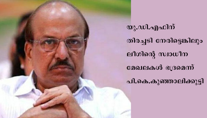 കോഴിക്കോട് : യു.ഡി.എഫിന് തിരച്ചടി നേരിട്ടെങ്കിലും ലീഗിന്റെ സ്വാധീനമേഖലകള്‍ ഭദ്രമെന്ന് പി.കെ.കുഞ്ഞാലിക്കുട്ടി. യു.ഡി.എഫ് ആത്മപരിശോധന നടത്തണമെന്നും മാധ്യമങ്ങളോട് സംസാരിക്കവെ കുഞ്ഞാലിക്കുട്ടി പറഞ്ഞു.
