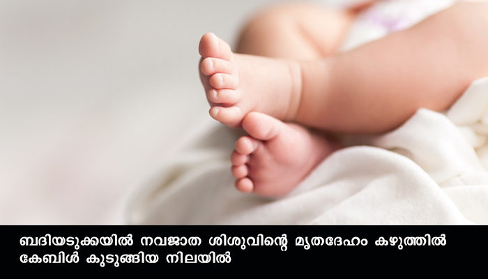 കാസര്ഗോഡ്: ബദിയടുക്കയിൽ നവജാത ശിശുവിന്റെ മൃതദേഹം കഴുത്തില് കേബിള് കുടുങ്ങിയ നിലയില് കണ്ടെത്തി. ചെടേക്കാൽ ഷാഫി- ഷാഹിന ദമ്പതിമാരുടെ വീട്ടിലാണ് പ്രസവശേഷം കുഞ്ഞിനെ കൊലപ്പെടുത്തിയ നിലയിൽ മൃതദേഹം കണ്ടെത്തിയത്.
