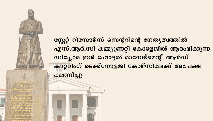 സ്റ്റേറ്റ് റിസോഴ്സ് സെന്ററിന്റെ നേതൃത്വത്തില് എസ്.ആര്.സി കമ്മ്യൂണറ്റി കോളേജില് ആരംഭിക്കുന്ന ഡിപ്ലോമ ഇന് ഹോട്ടല് മാനേജ്മെന്റ് ആന്ഡ് കാറ്ററിംഗ് ടെക്ക്നോളജി കോഴ്സിലേക്ക് അപേക്ഷ ക്ഷണിച്ചു. പ്ലസ് ടു അടിസ്ഥാന യോഗ്യതയുള്ളവര്ക്ക് അപേക്ഷിക്കാം. അപേക്ഷ, വിശദ വിവരങ്ങളടങ്ങിയ പ്രോസ്പെക്ടസ് എന്നിവ നന്ദാവനം പോലീസ് ക്യാമ്പിനു സമീപം പ്രവര്ത്തിക്കുന്ന എസ്.ആര്.സി ഓഫീസില് നിന്നും ലഭിക്കും. അപേക്ഷിക്കേണ്ട അവസാന തീയതി 2021 ജനവുരി 31. കൂടുതല് വിവരങ്ങള്ക്ക് 0471-2325101.