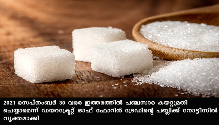 ദില്ലി:അമേരിക്കയിലേക്ക് 8424 ടണ് പഞ്ചസാര കയറ്റി അയക്കാന് കേന്ദ്ര സര്ക്കാര് അനുവാദം നല്കി. ടിആര്ക്യൂ താരിഫ് പ്രകാരമാണ് കയറ്റുമതി. കുറഞ്ഞ നിരക്കില് കയറ്റുമതിക്കുലളള അവസരമാണ് ഇതിലൂടെ ലഭിക്കുന്നത്. 2021 സെപ്തംബര് 30 വരെ ഇത്തരത്തില് പഞ്ചസാര കയറ്റുമതി ചെയ്യാമെന്ന് ഡയറക്ട്രേറ്റ് ഓഫ് ഫോറിന് ട്രേഡിന്റെ പബ്ലിക്ക് നോട്ടീസില് വ്യക്തമാക്കിയിട്ടുണ്ട്