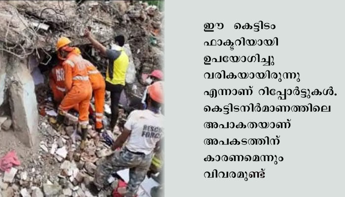 ഈ കെട്ടിടം ഫാക്ടറിയായി ഉപയോഗിച്ചു വരികയായിരുന്നു എന്നാണ് റിപ്പോർട്ടുകൾ. കെട്ടിടനിര്‍മാണത്തിലെ അപാകതയാണ് അപകടത്തിന് കാരണമെന്നും വിവരമുണ്ട്.