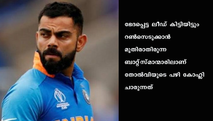 കരിയറില് ഇതുപോലൊരു മോശം പ്രകടനം വേറെ കണ്ടിട്ടില്ലെന്ന് മത്സരശേഷം കോഹ്ലി അഭിപ്രായപ്പെട്ടു. ഭേദപ്പെട്ട ലീഡ് കിട്ടിയിട്ടും റൺസെടുക്കാൻ മുതിരാതിരുന്ന ബാറ്റ്സ്മാന്മാരിലാണ് തോല്വിയുടെ പഴി കോഹ്ലി ചാരുന്നത്. രണ്ടാം ഇന്നിങ്സില് റണ്സെടുക്കണമെന്ന ആഗ്രഹമേ ഇന്ത്യയ്ക്കുണ്ടായില്ലെന്നും കോഹ്ലി പറഞ്ഞു.