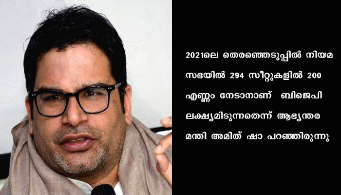 ന്യൂഡല്‍ഹി: നടക്കാനിരിക്കുന്ന തെരഞ്ഞെടുപ്പില്‍ ബിജെപി യുടെ നേട്ടം രണ്ടക്കം കടന്നാല്‍ താന്‍ ട്വിറ്റര്‍ ഉപേക്ഷിക്കുമെന്ന് തെരഞ്ഞെടുപ്പ് തന്ത്രജ്ഞന്‍ പ്രശാന്ത് കിഷോര്‍ ട്വീറ്റ് ചെയ്തു. 2021ലെ തെരഞ്ഞെടുപ്പില്‍ നിയമ സഭയില്‍ 294 സീറ്റുകളില്‍ 200 എണ്ണം നേടാനാണ് ബിജെപി ലക്ഷ്യമിടുന്നതെന്ന് ആഭ്യന്തര മന്തി അമിത്ഷാ പറഞ്ഞിരുന്നു.