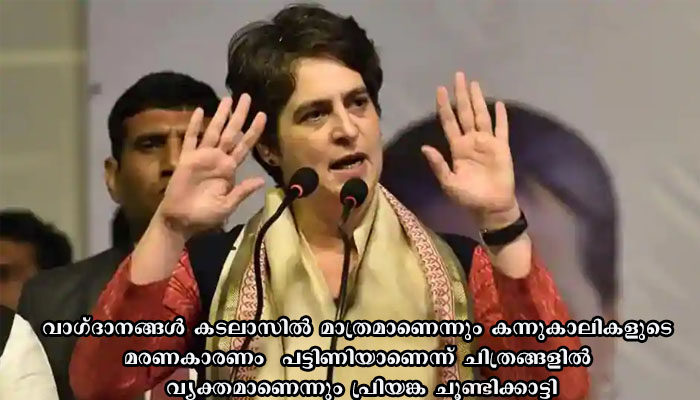 പശുക്കളെ സംരക്ഷിക്കാൻ ഗോശാലകൾ സ്ഥാപിക്കുമെന്ന ആദിത്യനാഥിന്റെ പ്രഖ്യാപനത്തെ ചോദ്യം ചെയ്തതാണ് കത്ത്.വാഗ്ദാനങ്ങൾ കടലാസിൽ മാത്രമാണെന്നും കന്നുകാലികളുടെ മരണകാരണം പട്ടിണിയാണെന്ന് ചിത്രങ്ങളിൽ വ്യക്തമാണെന്നും പ്രിയങ്ക ചൂണ്ടിക്കാട്ടി.