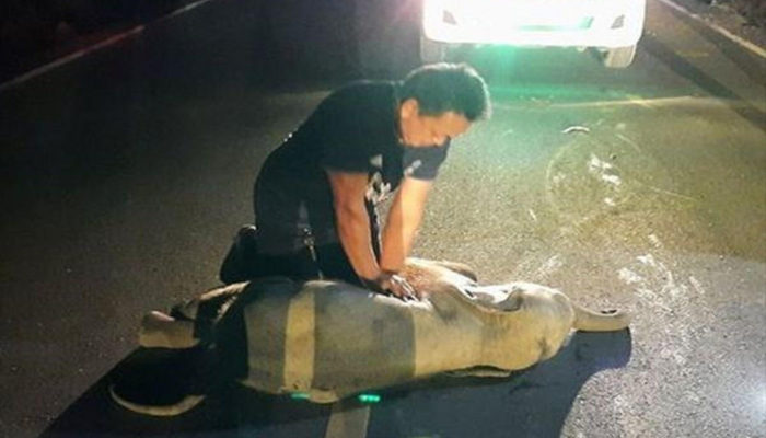 ചന്തബൂരി: തായ്ലന്റിലെ കിഴക്കന് പ്രവിശ്യയായ ചന്തബൂരിയില് റോഡ് മുറിച്ചുകടക്കുന്നതിനിടെ മോട്ടോര് സൈക്കിളില് ഇടിച്ചു പരിക്കേറ്റു വീണ ആനക്കുട്ടിക്ക് കൃത്രിമ ശ്വാസം നല്കി ജീവിതത്തിലേക്ക് തിരികെയെത്തിച്ചു. രക്ഷാപ്രവര്ത്തകനായ മന ശ്രീവെറ്റ് ആണ് റോഡില് കിടത്തി ആനക്കുട്ടിക്ക് സിപിആറും കൃത്രിമ ശ്വാസവും നല്കിയത്. തിങ്കളാഴ്ച മുതല് തായ്ലന്ഡില് സോഷ്യല് മീഡിയയില് വൈറലായ ഒരു വീഡിയോയില്, മന ശ്രീവെറ്റ് ആനക്കുട്ടിക്ക് സിപിആര് നല്കുന്നത് കാണാം. ആനയുടെ ഹൃദയം എവിടെയാണെന്ന് നേരത്തെ അറിയുമായിരുന്നില്ല. എന്നാല് കൃത്യമായ സ്ഥലം കണ്ടെത്തി അദ്ദേഹത്തിന് സിപിആര് നല്കാനായി. മനുഷ്യര് ഉള്പ്പെടുന്ന ഡസന് കണക്കിന് റോഡ് ട്രാഫിക് അപകടങ്ങള് കൈകാര്യം ചെയ്തിട്ടുണ്ടെങ്കിലും, സിപിആര് നടത്തുമ്പോള് പുനരുജ്ജീവിപ്പിക്കാന് കഴിഞ്ഞ ഒരേയൊരു ഇര ആനയാണെന്ന് മന പറഞ്ഞു.