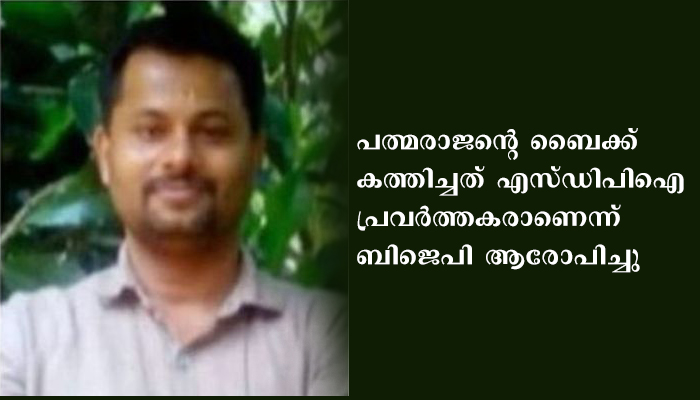 പത്മരാജന്റെ ബൈക്ക് കത്തിച്ചത് എസ്ഡിപിഐ പ്രവർത്തകരാണെന്ന് ബിജെപി ആരോപിച്ചു.
