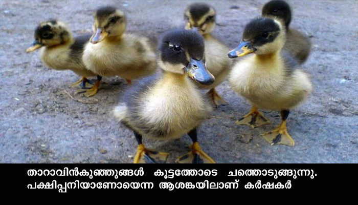 ആലപ്പുഴ: താറാവിന്കുഞ്ഞുങ്ങള് കൂട്ടത്തോടെ ചത്തൊടുങ്ങുന്നു. പക്ഷിപ്പനിയാണോയെന്ന ആശങ്കയിലാണ് കര്ഷകര്. സാമ്പിളുകള് ശേഖരിച്ച് തിരുവനന്തപുരം ചീഫ് ഇന്വേസ്റ്റ്ഗേറ്റിംഗ് ലാബിലേക്കയച്ചു ഇതിന്റെ പരിശോധനാ ഫലം ലഭിച്ചാലെ എന്താണ് കാരണമെന്ന അറിയാന് കഴിയൂ. കരുമാടി പളളിപ്പാട് മേഖലകളിലായി 17,000 ത്തോളം താറാവുകള് ഇതുവരെ ചത്തിട്ടുണ്ട്.
