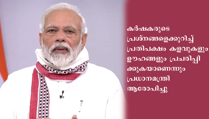 മണ്ഡികളെക്കുറിച്ചും എപിഎംസികളെക്കുറിച്ചും സംസാരിക്കുന്നവര് കേരളത്തേയും പശ്ചിമ ബംഗാളിനേയും നശിപ്പിച്ചവരാണെന്ന് മോദി കുറ്റപ്പെടുത്തി. കേരളത്തില് കാര്ഷിക വിപണന കമ്മറ്റികളും ചന്തകളും ഇല്ല. എന്നിട്ടും കേരളത്തില് കര്ഷക സമരം ഇല്ലാത്തതെന്തുകൊണ്ടാണ് അവര് ഒരു പ്രസ്ഥാനം ആരംഭിക്കാത്തതെന്തുകൊണ്ടാണ്. പഞ്ചാബിലെ കര്ഷകരെ അവര് തെറ്റിദ്ധരിപ്പിക്കുകയാണ് ചെയ്യുന്നതെന്നും കേരളം ഭരിക്കുന്ന ഇടതുപക്ഷത്തെ വ്യംഗ്യമായി സൂചിപ്പിച്ച് മോദി പറഞ്ഞു.