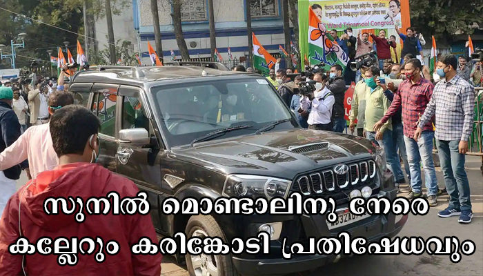തൃണമൂല് വിട്ട് ബിജെപിയില് ചേര്ന്ന എംപി സുനില് മൊണ്ടാലിനു നേരെ കല്ലേറും കരിങ്കോടി പ്രതിഷേധവും