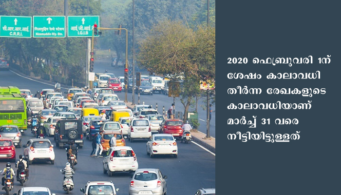 ന്യൂഡല്‍ഹി: രാജ്യത്തെ വാഹനങ്ങളുടെ രജിസ്‌ട്രേഷന്‍, പെര്‍മിറ്റ് എന്നിവയുടെ പുതുക്കല്‍ മാര്‍ച്ച് 31 വരെ കേന്ദ്ര സര്‍ക്കാര്‍ നീട്ടി നല്‍കി. 2020 ഫെബ്രുവരി 1ന് ശേഷം കാലാവധി തീര്‍ന്ന രേഖകളുടെ കാലാവധിയാണ് മാര്‍ച്ച് 31 വരെ നീട്ടിയിട്ടുള്ളത്.