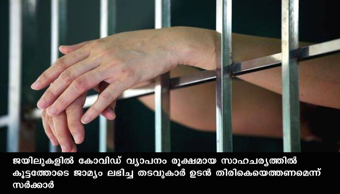 സെന്ട്രല് ജയിലുകളില് നിന്നും ഹൈ സെക്യൂരിറ്റി ജയിലുകളില് നിന്നുമായി മൂന്നാം ഘട്ടത്തില് പുറത്തിറങ്ങിയ 192 തടവുകാര് അടുത്തമാസം 7ന് ശേഷം മൂന്നുദിവസത്തിനുളളിലും 65 വയസിന് മുകളിലുളള തടവുകാര് അടുത്തമാസം 15ന് ശേഷം മൂന്നുദിവസത്തിനുളളിലും തിരികെയെത്തണമെന്നാണ് ആഭ്യന്തര വകുപ്പിന്റെ നിര്ദ്ദേശം.