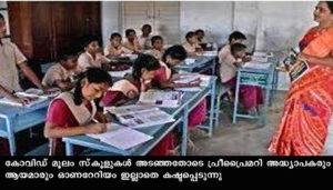 തിരുവനന്തപുരം: കോവിഡ് മൂലം സ്കൂളുകള് അടഞ്ഞതോടെ പ്രീപ്രൈമറി അദ്ധ്യാപകരും ആയമാരും ഓണറേറിയം ഇല്ലാതെ കഷ്ടപ്പെടുന്നു. പൊതുവിദ്യാലയങ്ങളില് കുട്ടികളെ ആകര്ഷിക്കുന്നതിനാണ് എയ്ഡഡ് സ്കൂളുകളിലും പ്രീപ്രൈമറി നിര്ബ്ബന്ധമാക്കിയത്. കുട്ടികളില് നിന്ന് ഫീസ് ഈടാക്കി അദ്ധ്യാപികമാര്ക്കും ആയമാര്ക്കുമുളള ഓണറേറിയം പിടിഎ നല്കണമെന്ന നിബന്ധനയിലാണ് എയ്ഡഡ് പ്രൈമറിക്ക് സര്ക്കാര് അനുമതി നല്കിയത്. എന്നാല് കോവിഡ്മൂലം സ്കൂളുകള് അടഞ്ഞതോടെ ഇവരുടെ ഓണറേറിയവും നിലച്ചു.
