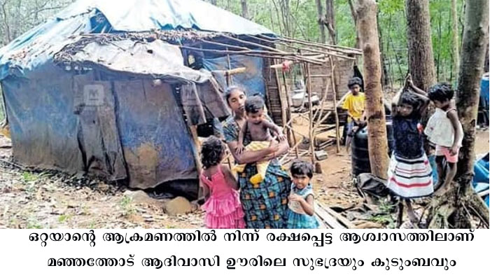 സീതത്തോട് : ഒറ്റയാൻ്റെ ആക്രമണത്തിൽ നിന്ന് രക്ഷപ്പെട്ട ആശ്വാസത്തിലാണ് മഞ്ഞത്തോട് ആദിവാസി ഊരിലെ സുഭദ്രയും കുടുംബവും. ഭാഗ്യം കൊണ്ടു മാത്രമാണ് താനും ഏഴുമക്കളും രക്ഷപെട്ടതെന്ന് സുഭദ്ര പറയുന്നു.