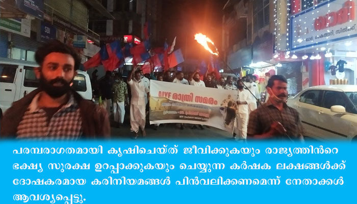 കര്‍ഷക സമരത്തിന്‌ ഐക്യ ദാര്‍ഢ്യം പ്രഖ്യാപിച്ച്‌ എഐ.എസ്‌എഫ്‌-എഐവൈഎഫ്‌. രാത്രിസമരം.
