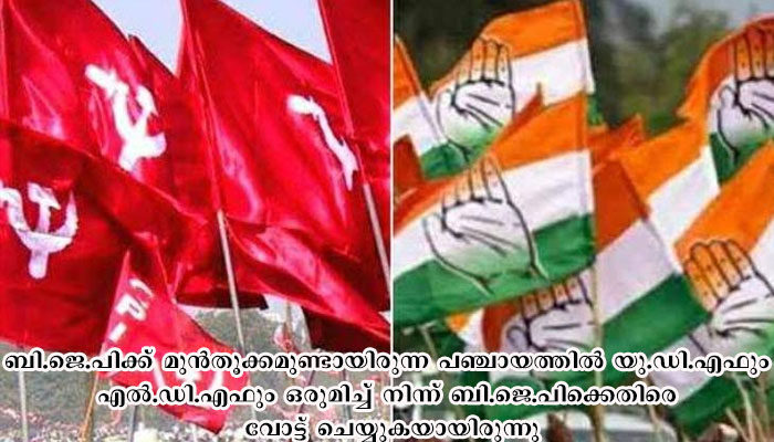ബി.ജെ.പിക്ക് മുന്തൂക്കമുണ്ടായിരുന്ന പഞ്ചായത്തില് യു.ഡി.എഫും എല്.ഡി.എഫും ഒരുമിച്ച് നിന്ന് ബി.ജെ.പിക്കെതിരെ വോട്ട് ചെയ്യുകയായിരുന്നു.