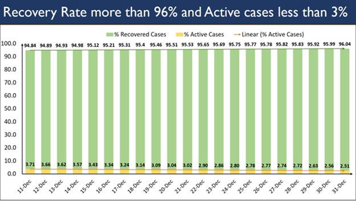 ഇന്ത്യയിൽ കോവിഡ് 19 രോഗ മുക്തി നിരക്ക് 96% എന്ന പുതിയ ഉയരത്തിൽ.