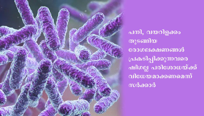 പനി, വയറിളക്കം തുടങ്ങിയ രോഗലക്ഷണങ്ങള് പ്രകടിപ്പിക്കുന്നവരെ ഷിഗല്ല പരിശോധയ്ക്ക് വിധേയമാക്കണമെന്ന് സർക്കാർ; സ്വകാര്യ ആശുപത്രികള്ക്ക് നിര്ദേശം നല്കി.