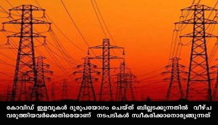 കുടിശിക അടച്ചുതീര്ക്കുന്ന കാര്യത്തില് ചിലര് സാവകാശം ചോദിച്ചിരുന്നു.ചിലര് പണംഅടക്കുന്നതിന് ഇളവുകളും ആവശ്യപ്പെട്ടിരുന്നു. ഇവരുടെ അപേക്ഷ പരിഗണിച്ച് മൂന്നോ നാലോ ഇന്സ്റ്റാള്മെന്റുകളായി പണം അടക്കുന്നതിനുളള അനുമതിയും നല്കിയിരുന്നു. എന്നാല് നേട്ടീസ് പൂര്ണ്ണമായും അവഗണിച്ചവര്ക്കെതിരെയാണ് നടപടി. കോവിഡ് ഇളവുകള് ദുരുപയോഗം ചെയ്ത് ബില്ലടക്കുന്നതില് വീഴ്ച വരുത്തിയവര്ക്കെതിരെയാണ് നടപടികള് സ്വീകരിക്കാനൊരുങ്ങുന്നത്.