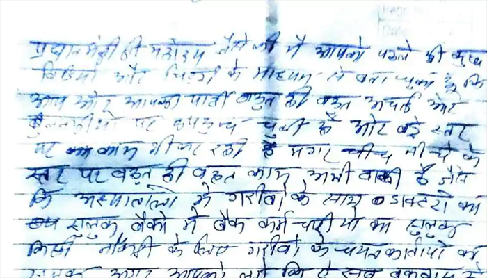 വന്കിട രാഷ്ട്രീയക്കാരും വ്യവസായികളും അഴിമതി നടത്തുമ്പോള് സര്ക്കാര് ഉദ്യോഗസ്ഥര് നടപടിയെടുക്കുന്നില്ല. അവര്ക്ക് യഥേഷ്ടം വായ്പ ലഭിക്കുന്നു. തിരിച്ചടവ് നടത്തിയില്ലെങ്കില് എഴുതി തള്ളുന്നു. എന്നാല് പാവപ്പെട്ടവന് എടുത്ത വായ്പയ്ക്ക് തിരിച്ചടവ് മുടങ്ങിയാല് എന്താണ് പ്രശ്നമെന്ന് പോലും സര്ക്കാര് അന്വേഷിക്കുന്നില്ല. പകരം അവനെ പൊതുമധ്യത്തിലിട്ട് അപമാനിക്കുന്നു’ കര്ഷകന്റെ ആത്മഹത്യ കുറിപ്പില് പറയുന്നു.സംഭവത്തില് പോലീസ് അന്വേഷണം ആരംഭിച്ചിട്ടുണ്ട്.
