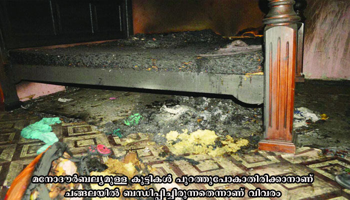 പരിക്കേറ്റ മാതാവിനെയും മറ്റു മൂന്നു കുട്ടികളെയും ജനറല് ആശുപത്രിയിലേക്കു മാറ്റി. മനോദൗര്ബല്യമുള്ള കുട്ടികള് പുറത്തുപോകാതിരിക്കാനാണ് ചങ്ങലയില് ബന്ധിപ്പിച്ചിരുന്നതെന്നാണ് വിവരം. സംഭവത്തില് അസ്വാഭാവിക മരണത്തിനു പോലീസ് കേസെടുത്തു.