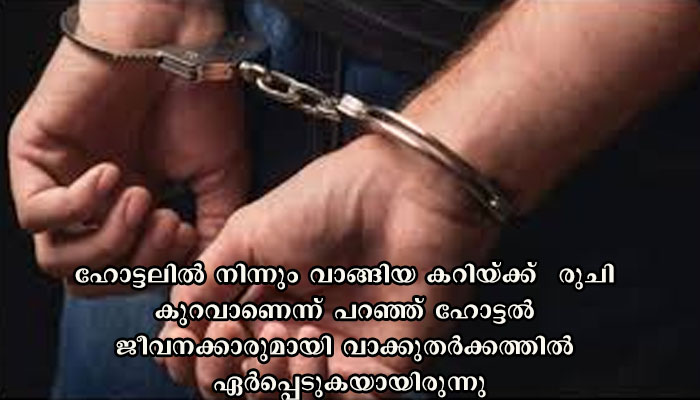 ഹോട്ടലില് നിന്നും വാങ്ങിയ കറിയ്ക്ക് രുചി കുറവാണെന്ന് പറഞ്ഞ് ഹോട്ടല് ജീവനക്കാരുമായി വാക്കുതര്ക്കത്തില് ഏര്പ്പെടുകയായിരുന്നു. തുടർന്ന്