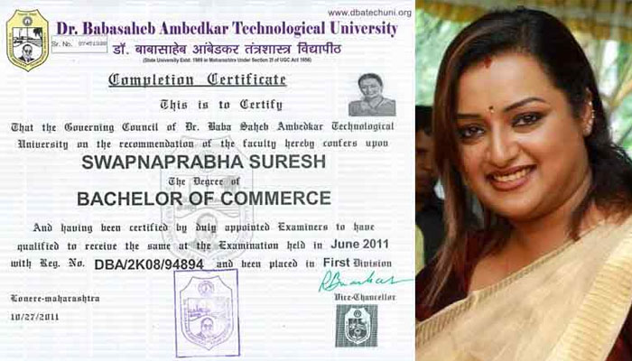 മുംബൈയിലെ ഡോ.ബാബ സാഹിബ് സര്വ്വകലാശാലയുടെ സര്ട്ടിഫിക്കറ്റാണ് സ്വപ്നക്ക് ലഭിച്ചത്.