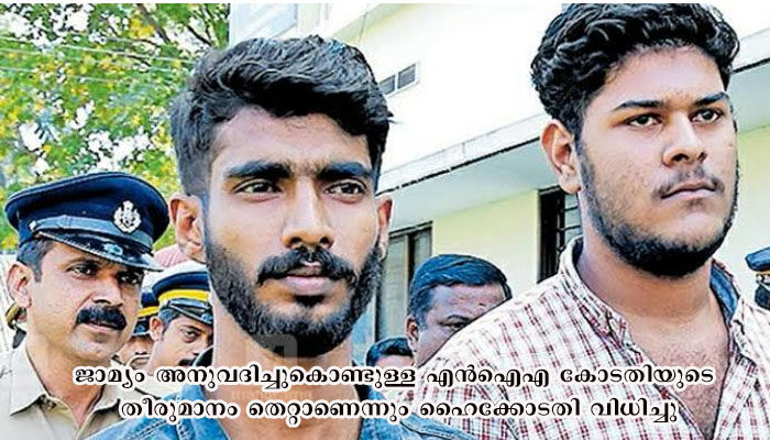 ഇക്കഴിഞ്ഞ സെപ്റ്റംബര്‍ ഒന്‍പതിനാണ് അലനും താഹയ്ക്കും കൊച്ചിയിലെ എന്‍ഐഎ കോടതി ജാമ്യം അനുവദിച്ചത്. ഈ ഉത്തരവ് ചോദ്യം ചെയ്താണ് എന്‍ഐഎ അപ്പീലുമായി ഹൈക്കോടതിയെ സമീപിച്ചത്. വിചാരണക്കോടതിയുടെ നടപടി വസ്തുതകള്‍ പരിശോധിക്കാതെയാണെന്നും, പ്രതികള്‍ക്ക് ജാമ്യം നല്‍കിയത് സമൂഹത്തിന് തെറ്റായ സന്ദേശം നല്‍കുമെന്നുമായിരുന്നു ഹര്‍ജിയില്‍ എന്‍ഐഎയുടെ വാദം.