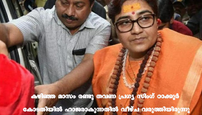 കഴിഞ്ഞ മാസം രണ്ടു തവണ പ്രഗ്യ സിംഗ് ഠാക്കൂർ കോടതിയിൽ ഹാജരാകുന്നതിൽ വീഴ്ച വരുത്തിയിരുന്നു. ഇതിൽ പ്രത്യേക ജഡ്ജി പി ആർ സിട്രെ അതൃപ്തി പ്രകടിപ്പിച്ചിരുന്നു. കേസിലെ വാദം 05/01/21 ചൊവ്വാഴ്ചത്തേക്ക് മാറ്റിയിട്ടുണ്ട്.