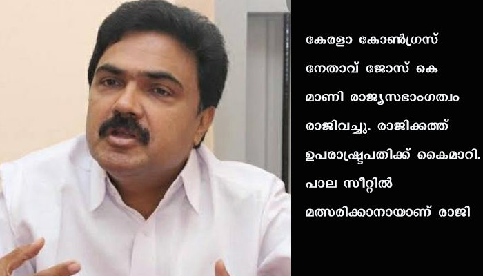 ജോസ് കെ മാണി രാജ്യസഭാംഗത്വം രാജിവച്ചു
