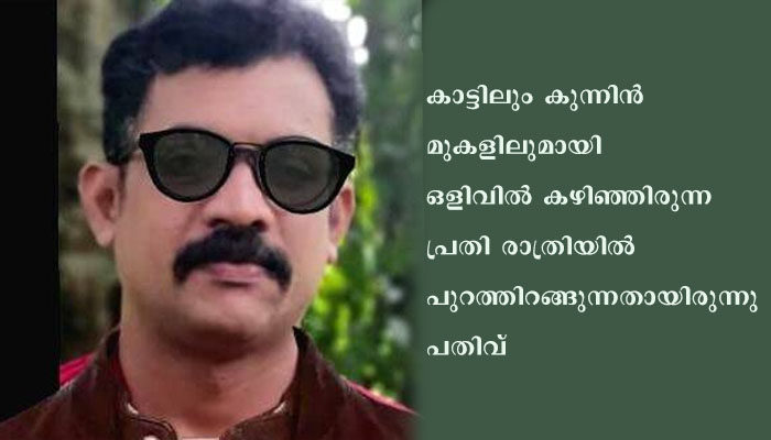 കാട്ടിലും കുന്നിന്‍ മുകളിലുമായി ​ഒളിവില്‍ ​കഴിഞ്ഞിരുന്ന പ്രതി രാത്രിയിൽ പുറത്തിറങ്ങുന്നതായിരുന്നു പതിവ്. രാത്രിയില്‍ തുടര്‍ച്ചയായി സി.സി.ടി.വി നിരീക്ഷിച്ചാണ് ഒളി സങ്കേതം ​പൊ​ലീസ് കണ്ടെത്തിയത്. ചേലേമ്പ്ര കൊളക്കുത്ത് ഭാഗത്ത് കുറ്റിക്കാടുകള്‍ക്കിടയില്‍ കഴിഞ്ഞിരുന്ന പ്രതിയെ അര്‍ദ്ധരാത്രിയാണ് പൊലീസ് പിടിച്ചത്​