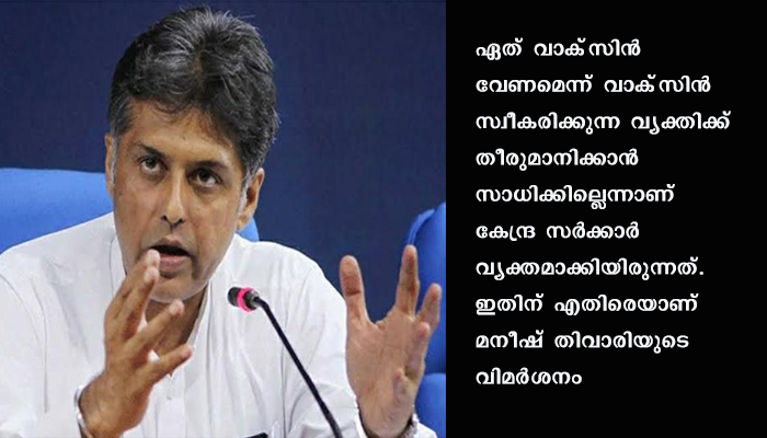 കേന്ദ്ര സര്ക്കാര് കോവാക്സിന്റെ അടിയന്തര ഉപയോഗം അനുവദിച്ചു. എന്നാല് ഏത് വാക്സിന് വേണമെന്നുള്ളത് സ്വീകരിക്കുന്ന ആള്ക്ക് തീരുമാനിക്കാനാകില്ലെന്നാണ് ഇപ്പോഴുള്ള വിശദീരണം. കോവാക്സിന്റെ മൂന്നാം ഘട്ട പരീക്ഷണം പൂര്ത്തിയായില്ലെന്നതും മനീഷ് തിവാരി ചൂണ്ടിക്കാട്ടി. കൂടാതെ വാക്സിന്റെ കാര്യക്ഷമതയും സംശയാസ്പദമാണെന്നും മനീഷ് തിവാരി പറഞ്ഞു.