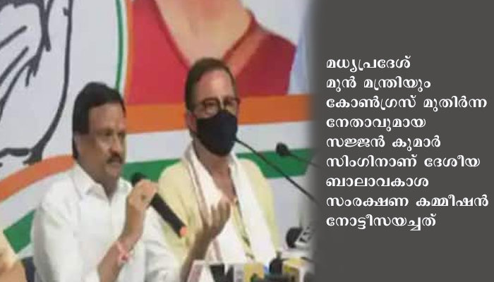 മധ്യപ്രദേശ് മുന് മന്ത്രിയും കോണ്ഗ്രസ് മുതിര്ന്ന നേതാവുമായ സജ്ജന് കുമാര് സിംഗിനാണ് ദേശീയ ബാലാവകാശ സംരക്ഷണ കമ്മീഷന് നോട്ടീസയച്ചത്.