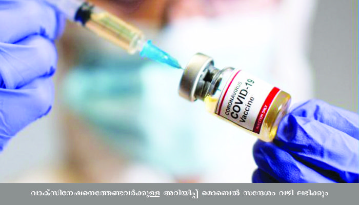 ആദ്യദിവസം രജിസ്റ്റര്‍ ചെയ്ത ആരോഗ്യ പ്രവര്‍ത്തകര്‍ക്ക് മാത്രമാണ് വാക്സിന്‍ നല്‍കുന്നത്. ‘കോവിന്‍’ ആപ്പ് ഉപയോഗിച്ചാണ്  വാക്സിനേഷനെത്തുന്നവരുടെ രജിസ്ട്രേഷന്‍ നടത്തുന്നത്. ഇതിനായി എല്ലാ കേന്ദ്രങ്ങളിലും ഹൈസ്പീഡ് ഇന്റര്‍നെറ്റ് കണക്ടിവിറ്റി ഉറപ്പ് വരുത്തിയിട്ടുണ്ട്.  വാക്സിനേഷനെത്തേണ്ടവര്‍ക്കുള്ള അറിയിപ്പ് മൊബെല്‍ സന്ദേശം വഴി ലഭിക്കും. സന്ദേശം ലഭിച്ചവര്‍  നിര്‍ദേശിക്കപ്പെട്ട വാക്സിനേഷന്‍ കേന്ദ്രങ്ങളില്‍, നിര്‍ദിഷ്ട സമയം ആധാര്‍ കാര്‍ഡുമായി എത്തി വാക്സിന്‍ സ്വീകരിക്കും.