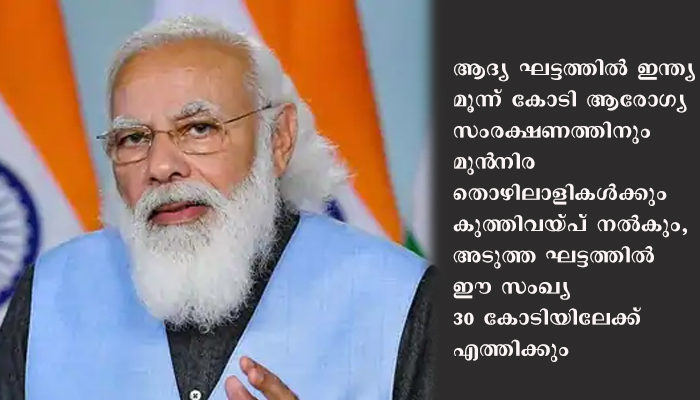 വാക്സിനുകൾ ചുരുങ്ങിയ സമയപരിധിക്കുള്ളിൽ ആരംഭിക്കാൻ നമുക്ക് സാധിച്ചു, ഇത് ഇന്ത്യയെ സംബന്ധിച്ചിടത്തോളം ഒരു നേട്ടമാണ്. മൂന്ന് കോടി ജനസംഖ്യയില്ലാത്ത 100 രാജ്യങ്ങളുണ്ട്, എന്നാൽ ആദ്യ ഘട്ടത്തിൽ ഇന്ത്യ മൂന്ന് കോടി ആരോഗ്യ സംരക്ഷണത്തിനും മുൻനിര തൊഴിലാളികൾക്കും കുത്തിവയ്പ് നൽകും, അടുത്ത ഘട്ടത്തിൽ ഈ സംഖ്യ 30 കോടിയിലേക്ക് എത്തിക്കും. 30 കോടിയിലധികം ജനസംഖ്യയുള്ള ലോകത്ത് മൂന്ന് രാജ്യങ്ങൾ മാത്രമേയുള്ളൂ, ഇന്ത്യ, യുഎസ്, ചൈന. അതിനാൽ, ഇത് ഏറ്റവും വലിയ വാക്സിനേഷൻ ഡ്രൈവ് ആയിരിക്കും,” മോദി പറഞ്ഞു.