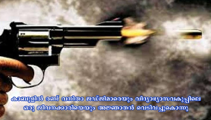 കാബൂള്: അഫ്ഗാനിസ്ഥാന്റെ തലസ്ഥാനമായ കാബൂളില് രണ്ട് വനിതാ ജഡ്ജിമാരെയും വിദ്യാഭ്യാസവകുപ്പിലെ ഒരു ജീവനക്കാരിയെയും അജ്ഞാതന് വെടിവച്ചുകൊന്നു. വെടിവയ്പില് ഡ്രൈവര്ക്കും മറ്റൊരാള്ക്കും പരിക്കുണ്ട്. ടൊളൊ ന്യൂസാണ് വാര്ത്ത പുറത്തുവിട്ടത്.